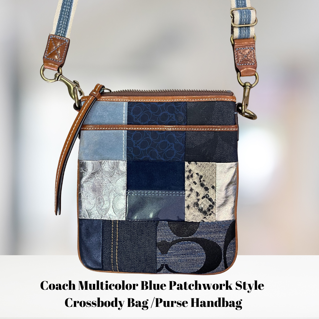 This COACH Patchwork Denim Crossbody Bag is the ultimate mix of laid-back vibes and bold style. Featuring a stunning patchwork design with different shades of denim, metallic accents, and signature COACH patterns, this bag brings a fun, eclectic edge to your wardrobe. The tan leather trim adds a touch of warmth, while the adjustable woven strap makes it super comfy to carry all day long.
